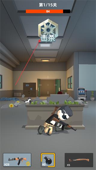 2、成功击杀敌人后,继续清理战场,推进关卡进度。