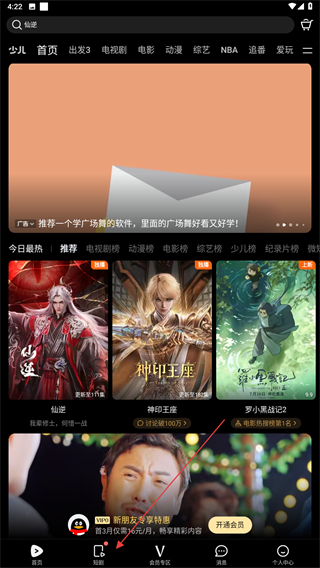 1、启动腾讯视频的应用,进入首页点击下方短剧的标签。