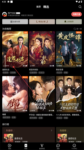 2、进入短剧精选的页面内,选择并点击要看的短剧内容。