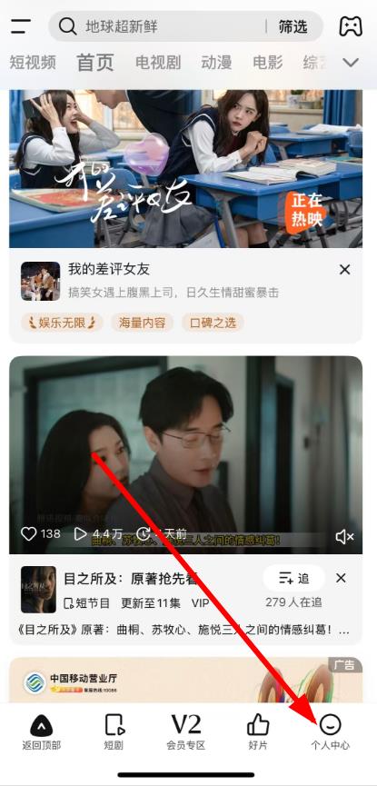 1、打开腾讯视频APP,点击底部导航栏中的个人中心。