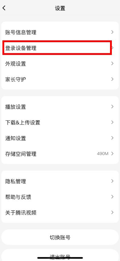 3、在设置页面中,找到并点击登录设备管理选项,即可查看登录当前腾讯视频账号的设备信息。