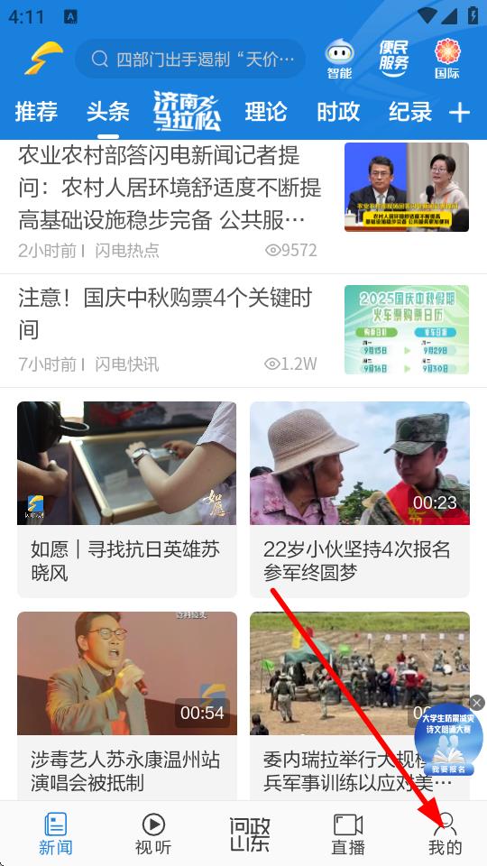 1、打开闪电新闻App,点击底部导航栏最右侧的我的选项。