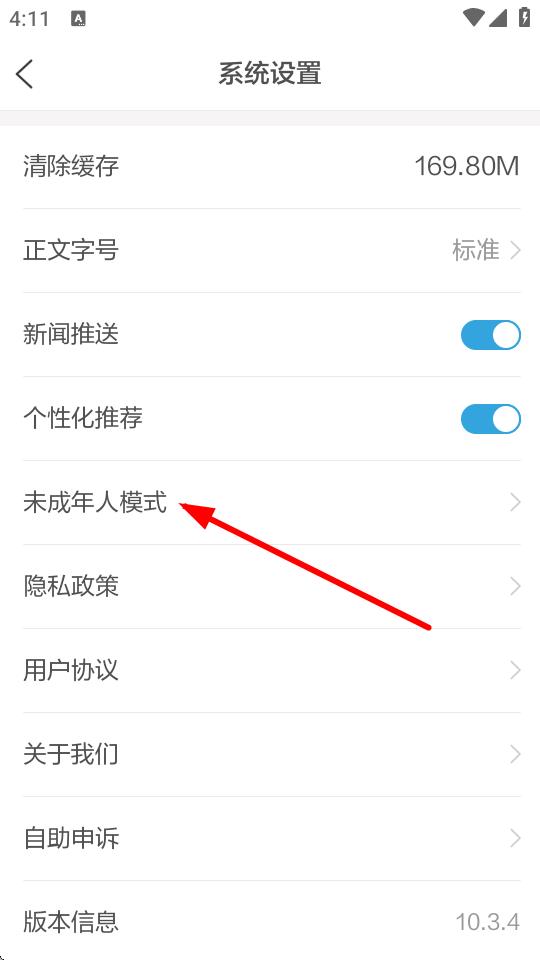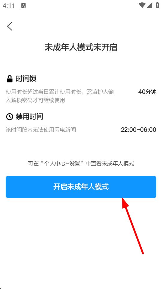 4、进入未成年人模式页面后,点击开启未成年人模式按钮,根据提示完成设置,即可开启青少年模式。