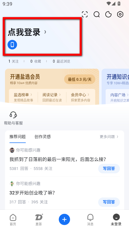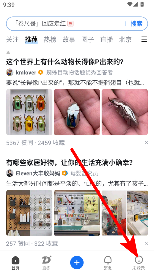 1、在知乎首页,点击右下角未登录选项,进入登录界面。