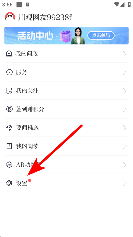 2、在川观新闻个人中心页面,点击设置选项,进入设置页面。