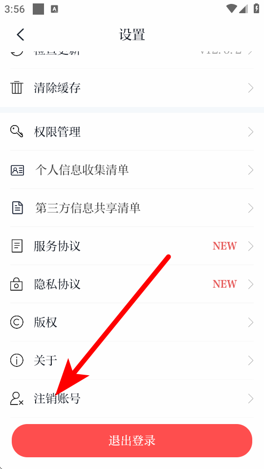 3、在设置页面,点击注销账号选项,进入注销须知页面。