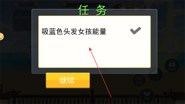 2、接收吸蓝色头发女孩能量任务,点击继续开始执行任务。