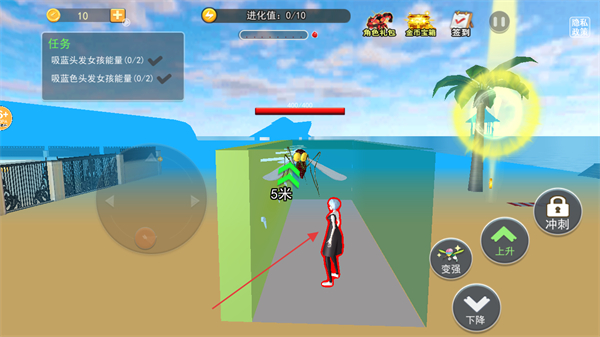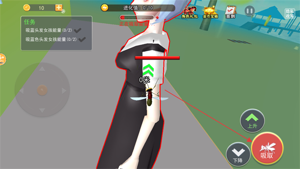 4、贴近蓝色头发女孩,点击吸取按钮,吸取其能量,完成任务目标。