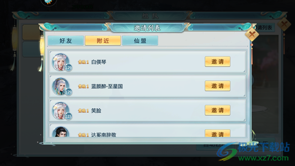 4、选择好友,附近或仙盟中的玩家,点击“邀请”即可。