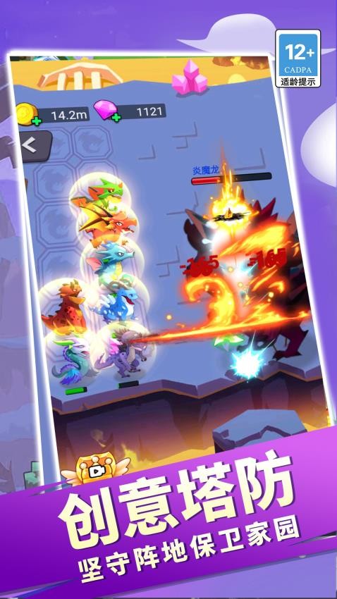 1、建造炮塔:建造城堡炮塔抵御进攻,帮助恐龙保卫家园,完美抵御邪恶怪物。