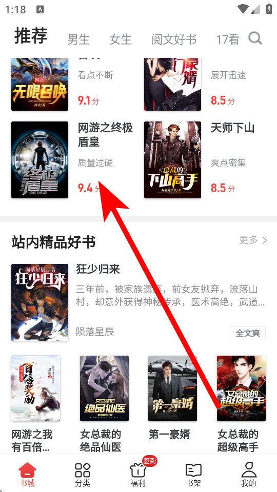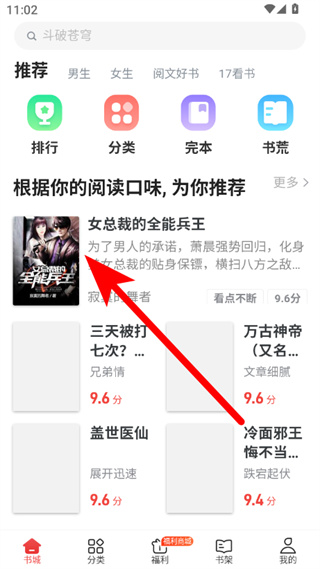 1、在追书神器书城页面,点击任意书籍,进入书籍详情页面。