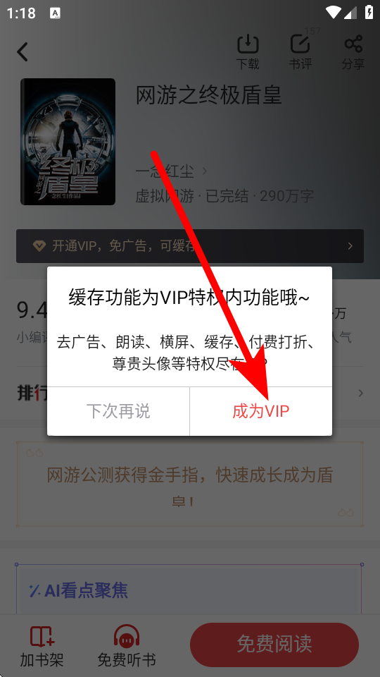3、若不是VIP用户,会弹出提示,点击成为VIP。