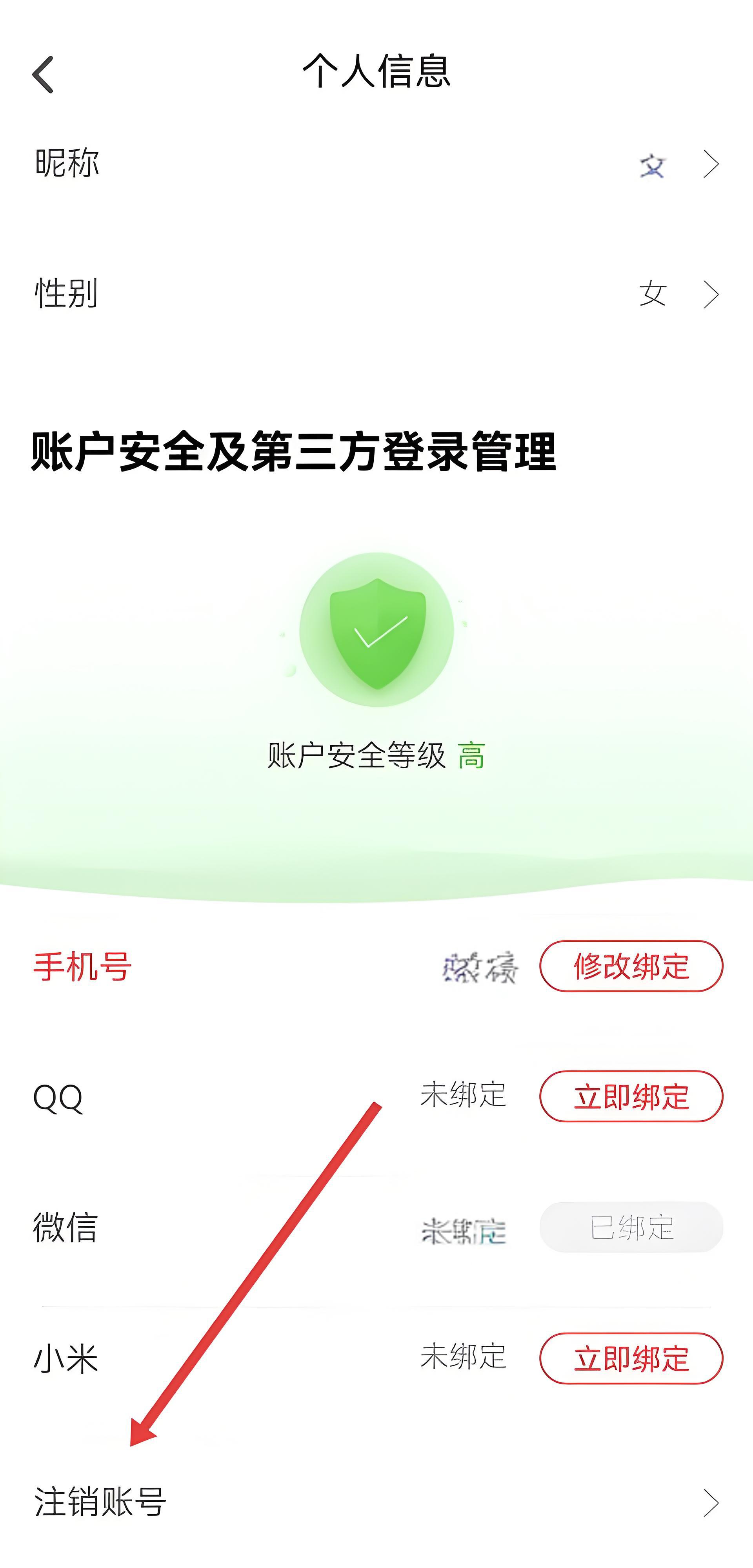 4、在账号安全页面,点击注销账号,按照提示完成后续注销操作。