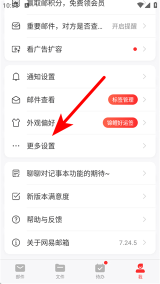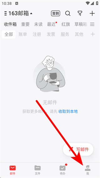 1、打开网易邮箱APP,点击底部导航栏的我,进入个人功能页面。