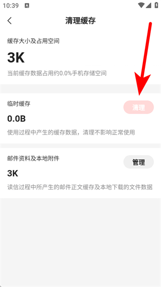 4、在清理缓存页面,找到临时缓存板块的清理按钮,点击完成缓存清理。