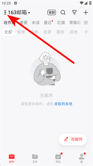 1、打开网易邮箱APP,点击左上角的菜单按钮,展开功能的列表。