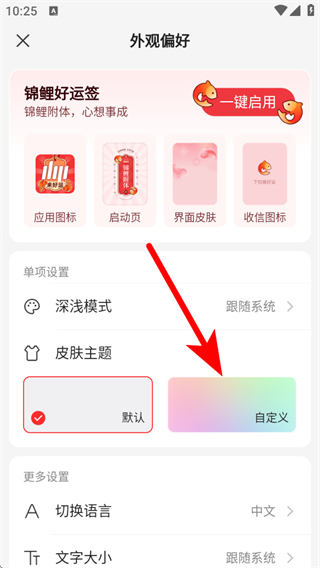 3、在外观偏好设置页面,找到皮肤主题的自定义选项,点击进入设置界面。