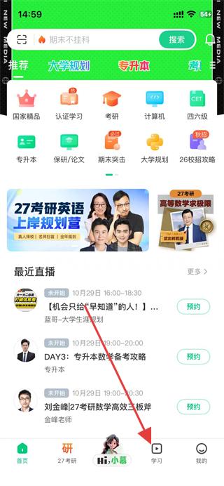 1、打开慕课app,点击底部导航栏的学习选项。