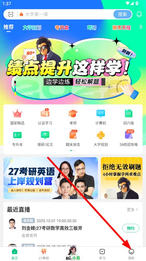 1、打开中国大学moocAPP,点击首页右下角“我的”进入个人界面。