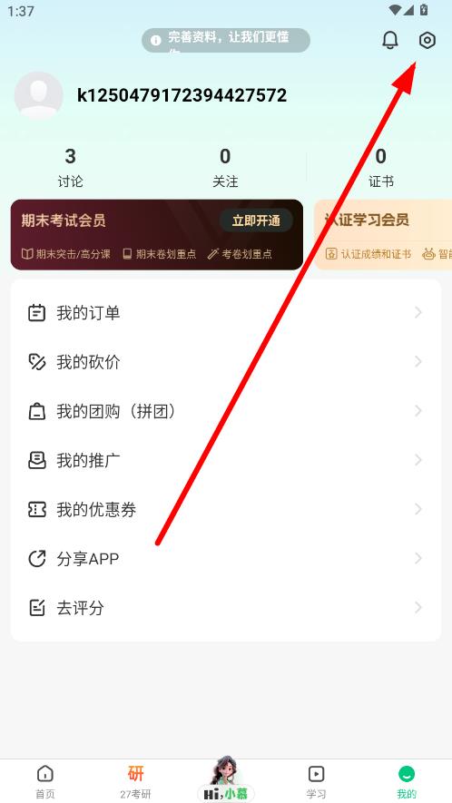 2、在个人界面中,点击右上角设置图标,进入设置页面。