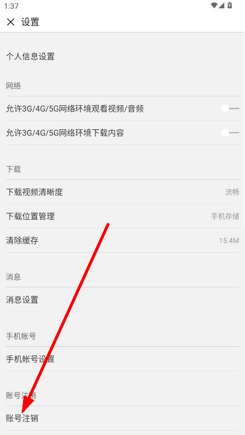 3、在设置页面,下滑找到并点击账号注销选项。