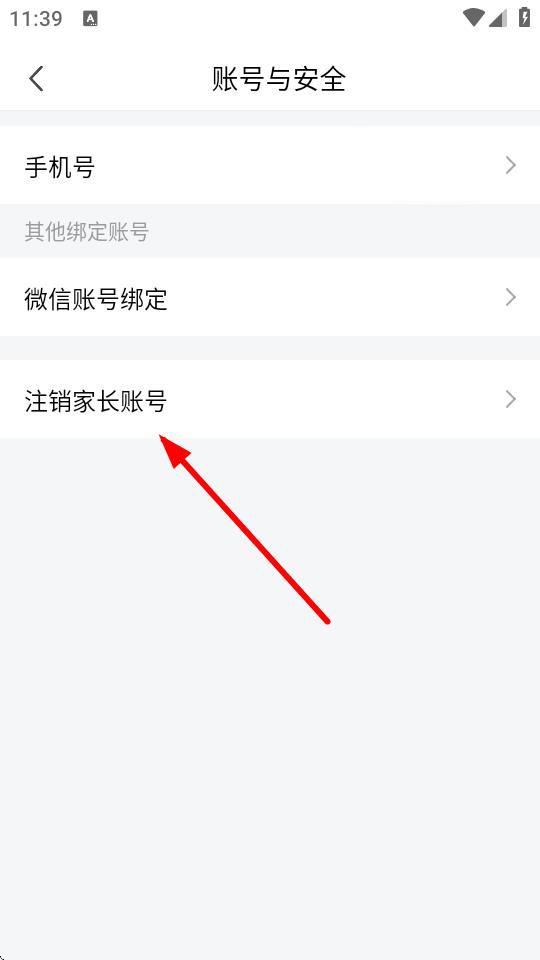 3、在账号与安全页面,点击注销家长账号,进入注销账号流程。