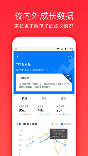 1、校内作业和能力测评反馈,随时查看孩子成长动态;