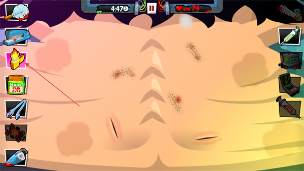 以章节划分游戏内容,前期手术简单易操作,后期病例复杂度提升,手术步骤增多,对操作速度与准确性要求更高。