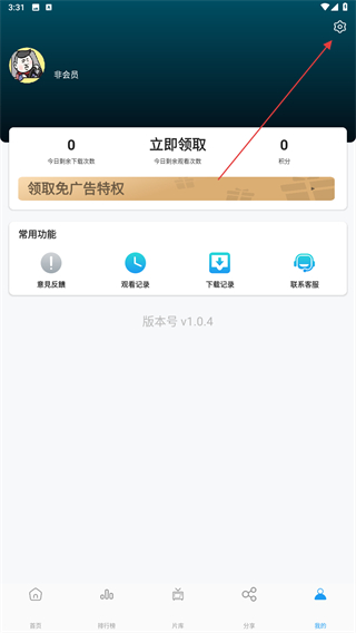 2、进入个人中心的页面内,点击右上角设置的功能按钮。