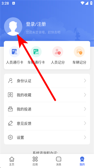 2、在个人页面中,点击登录/注册区域,进入登录注册的界面。