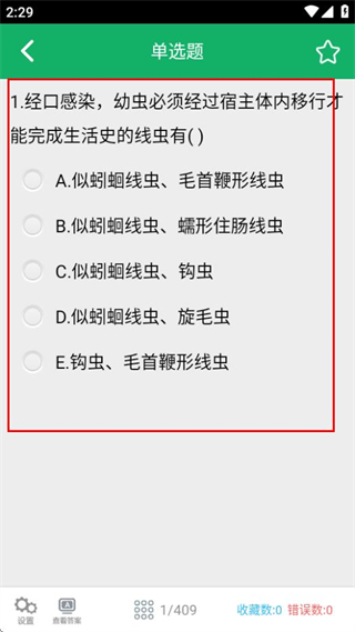 4、在答题界面,分析各个选项的含义,进行单选题的作答练习。