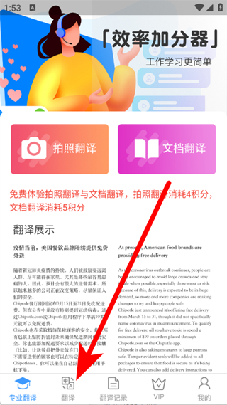 1、打开翻译大师,点击底部翻译板块,进入翻译功能页面。