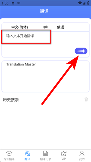 3、在输入框中,输入需要翻译的文本内容,点击翻译按钮启动翻译流程。