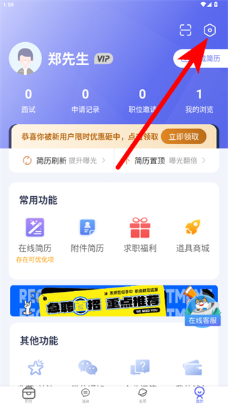 1、打开百城招聘APP,点击右下角我的,进入个人页面。