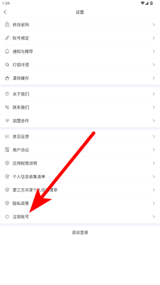 3、在设置界面中,点击注销账号选项,进入注销账号页面。
