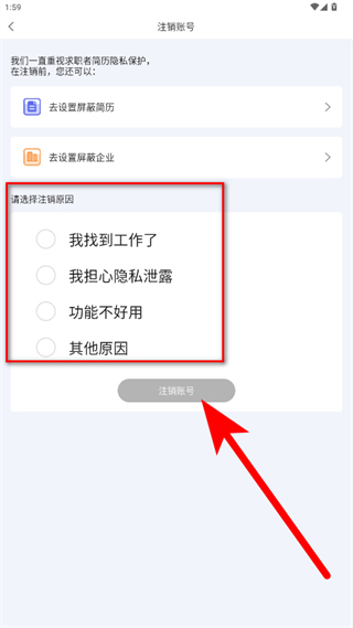 4、在注销账号页面,选择注销原因后点击注销账号按钮,完成账号注销。