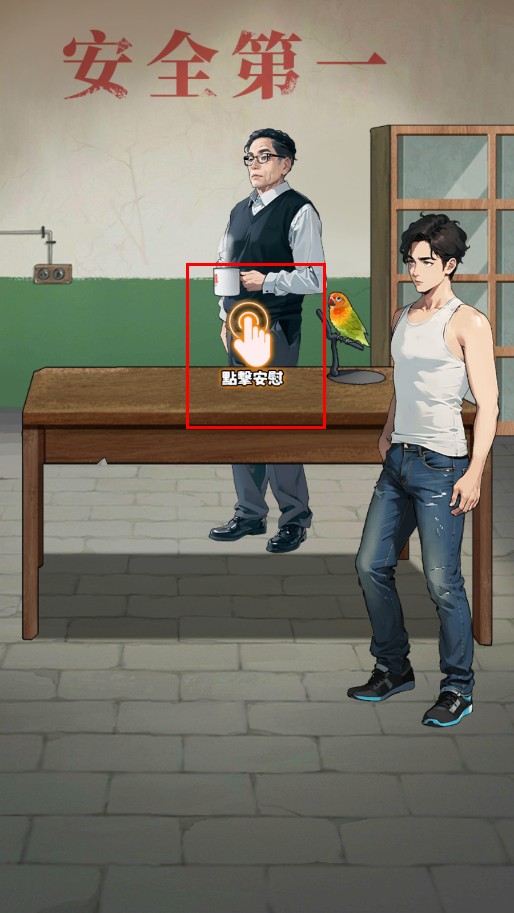 1、点击【點擊安慰】区域,触发与人物的互动剧情,为后续剧情推进做铺垫。