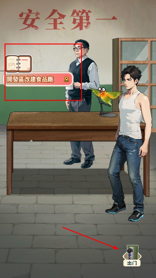 4、处理【開發區改建食品廠】任务后,点击【出门】,开启后续剧情发展。