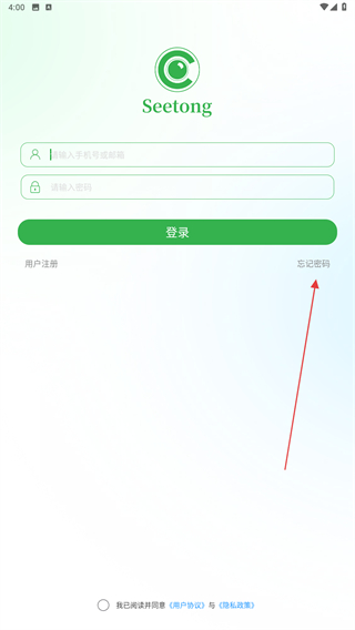 1、启动手机远程监控的APP,进入时点击右侧忘记密码。