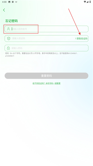 2、进入忘记密码的界面内,输入手机号再点击获取验证码。