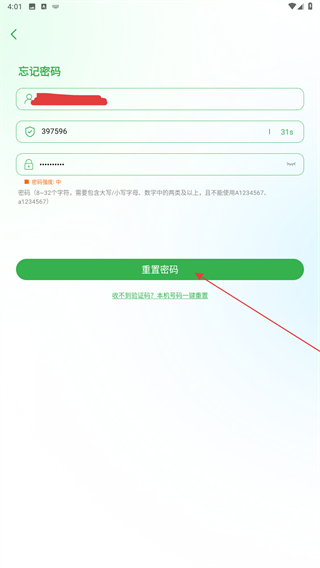 3、输入验证码、新密码后,再点击重置密码的按钮即可。
