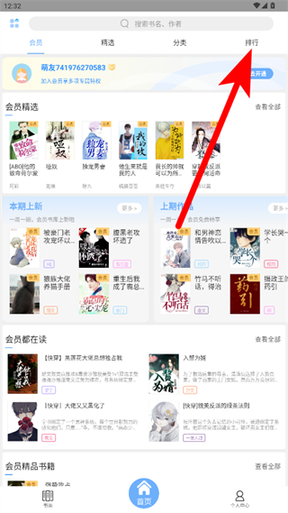 1、打开微耽小说APP,点击顶部排行,进入排行页面。