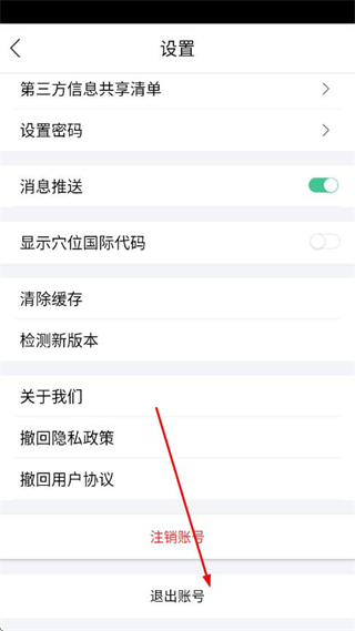 3、在设置页面点击退出账号,即可完成登录退出操作。