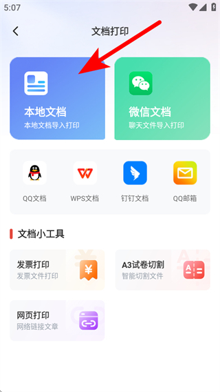 2、进入文档打印的页面后,我们这里可以选择点击本地文档。
