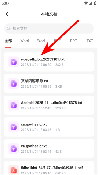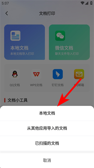4、进入本地文档列表后,选择需要打印的文档,即可进入打印设置流程。