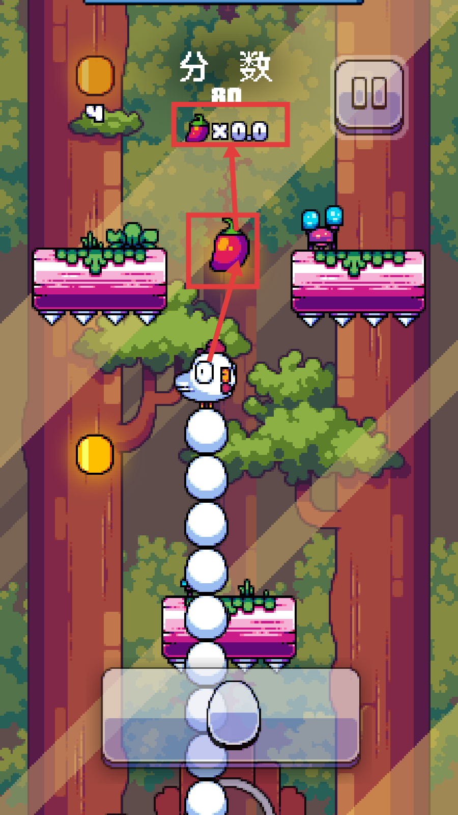 3、收集辣椒道具,提升分数倍数至x0.0,分数达80,增强得分效率。