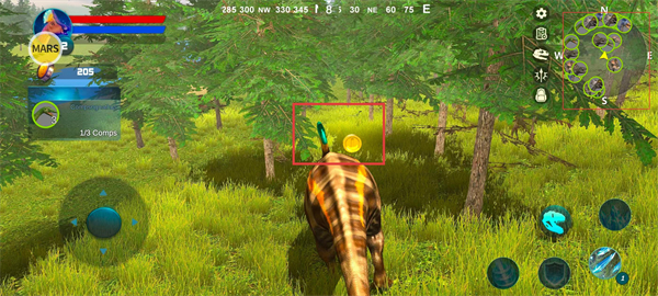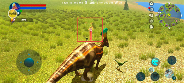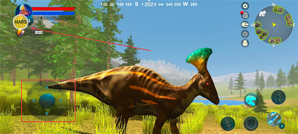 1、通过左侧虚拟摇杆控制恐龙移动,点击MARS可以打开内置菜单。