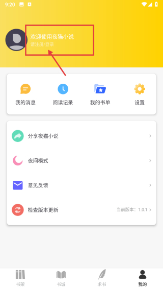 1、打开小说类APP,点击底部我的选项,进入个人页面。
