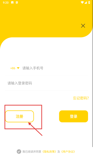 3、在登录注册页面,点击注册选项,进入注册页面。