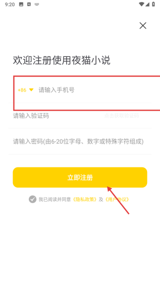4、在注册页面,输入手机号、验证码和密码后,点击立即注册按钮,完成账号注册操作。